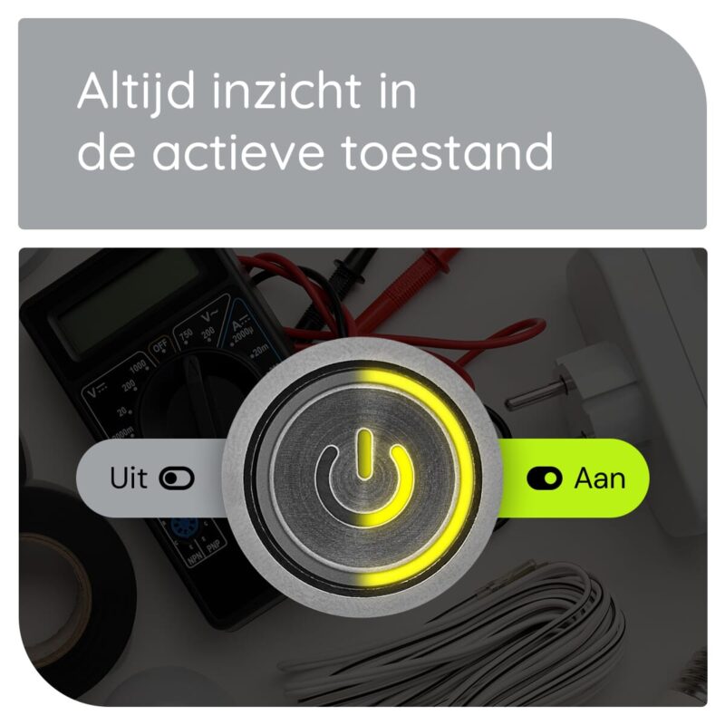 Dankzij de ingebouwde gele LED indicatie weet je altijd of de schakelaar actief is. Dit biedt niet alleen extra veiligheid, maar ook gemak, vooral in donkere ruimtes of bij complexe installaties.