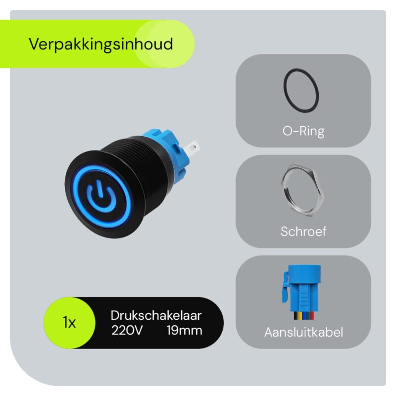 - Hoe groot is de schakelaar? De schakelaar heeft een diameter van 19mm.