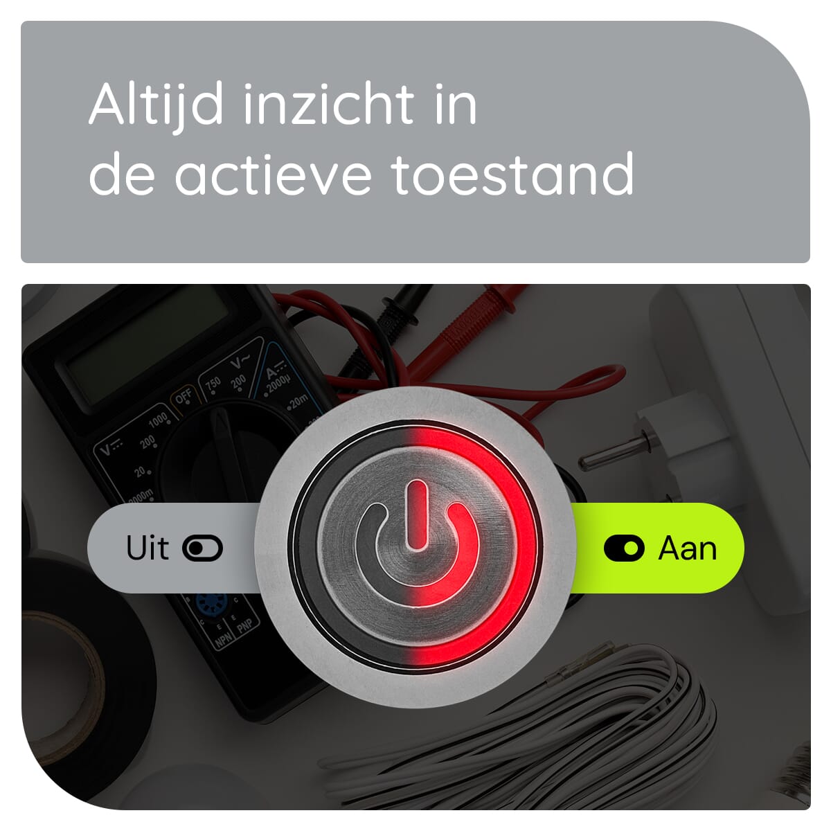 Dankzij de ingebouwde rode LED-indicatie weet je altijd of de schakelaar actief is. Dit biedt niet alleen extra veiligheid, maar ook gemak, vooral in donkere ruimtes of bij complexe installaties.