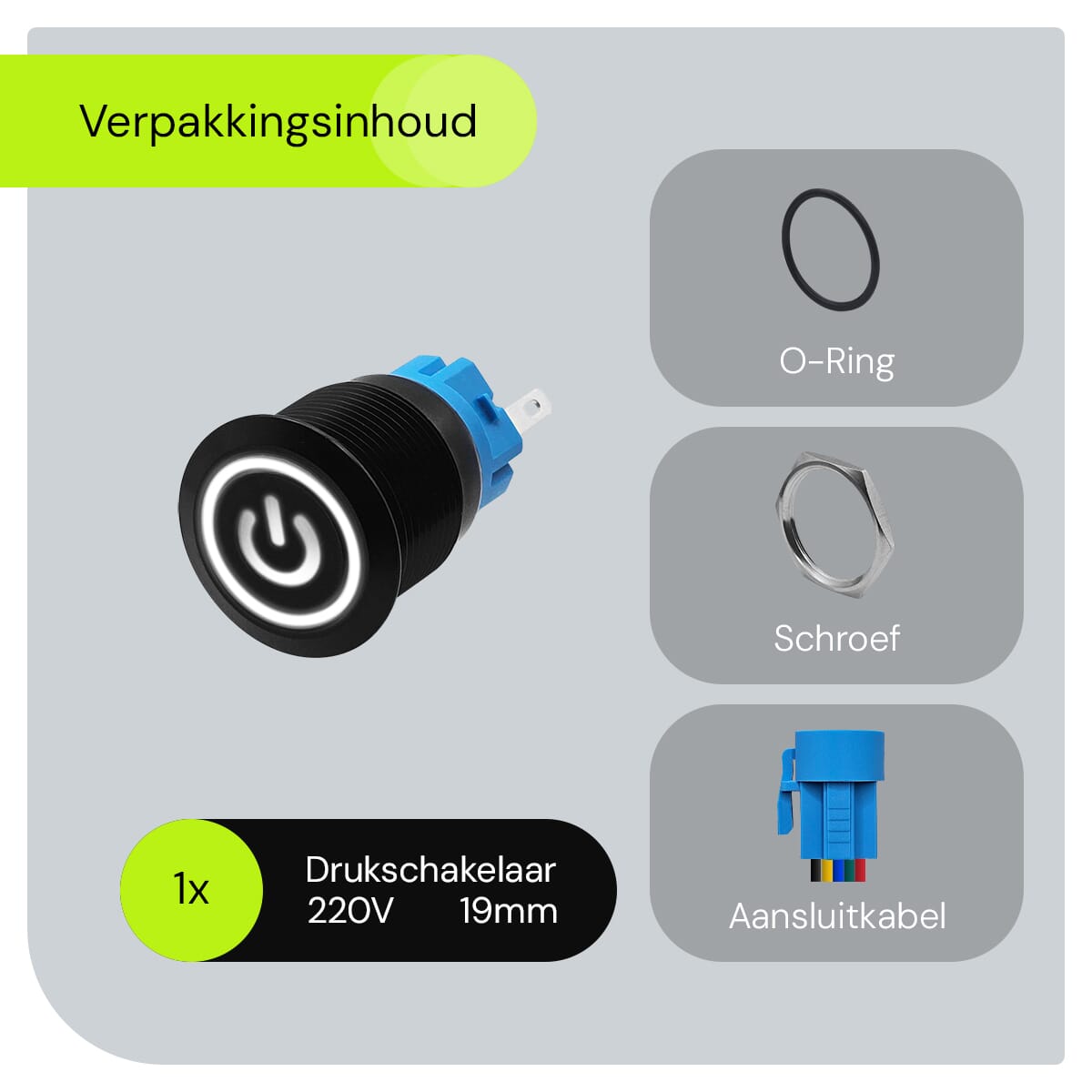 - Wat is de diameter van de schakelaar? De schakelaar heeft een diameter van 19mm.
