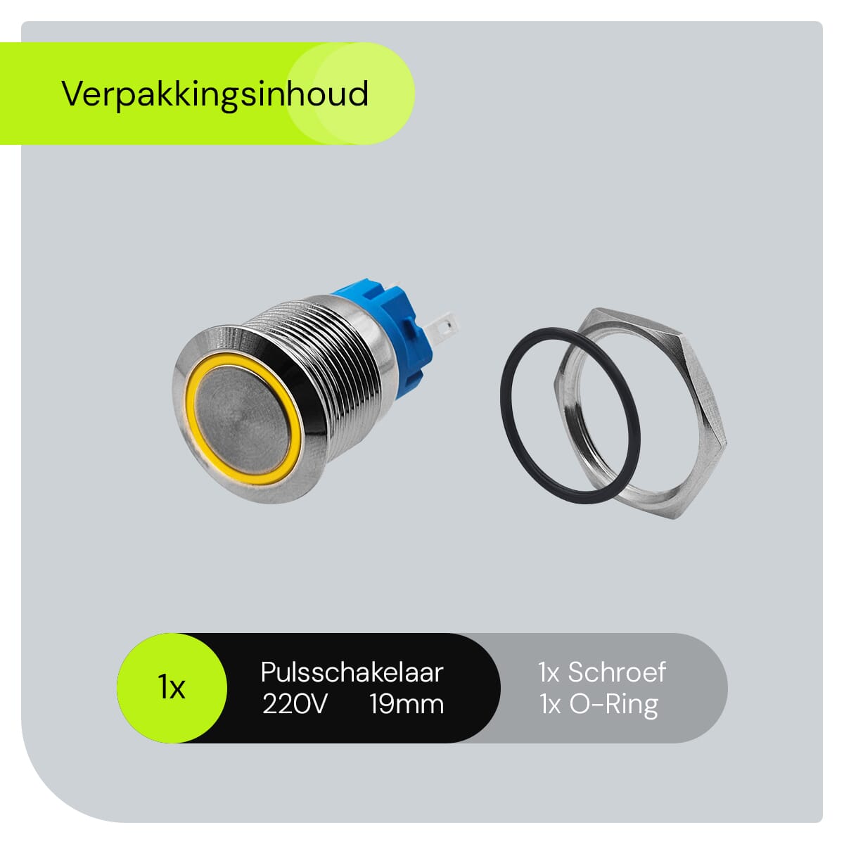 - Wat is de diameter van de schakelaar? De schakelaar heeft een diameter van 19mm.