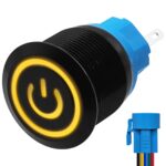 ProRide Metalen Pulsschakelaar 220V OFF-(ON) – 22mm – Momentschakelaar met Aansluitkabel – Spatwaterdicht – LED Indicatie Geel
