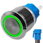 ProRide Metalen Pulsschakelaar 220V OFF-(ON) – 22mm – Momentschakelaar met Aansluitkabel – Spatwaterdicht – LED Indicatie Groen
