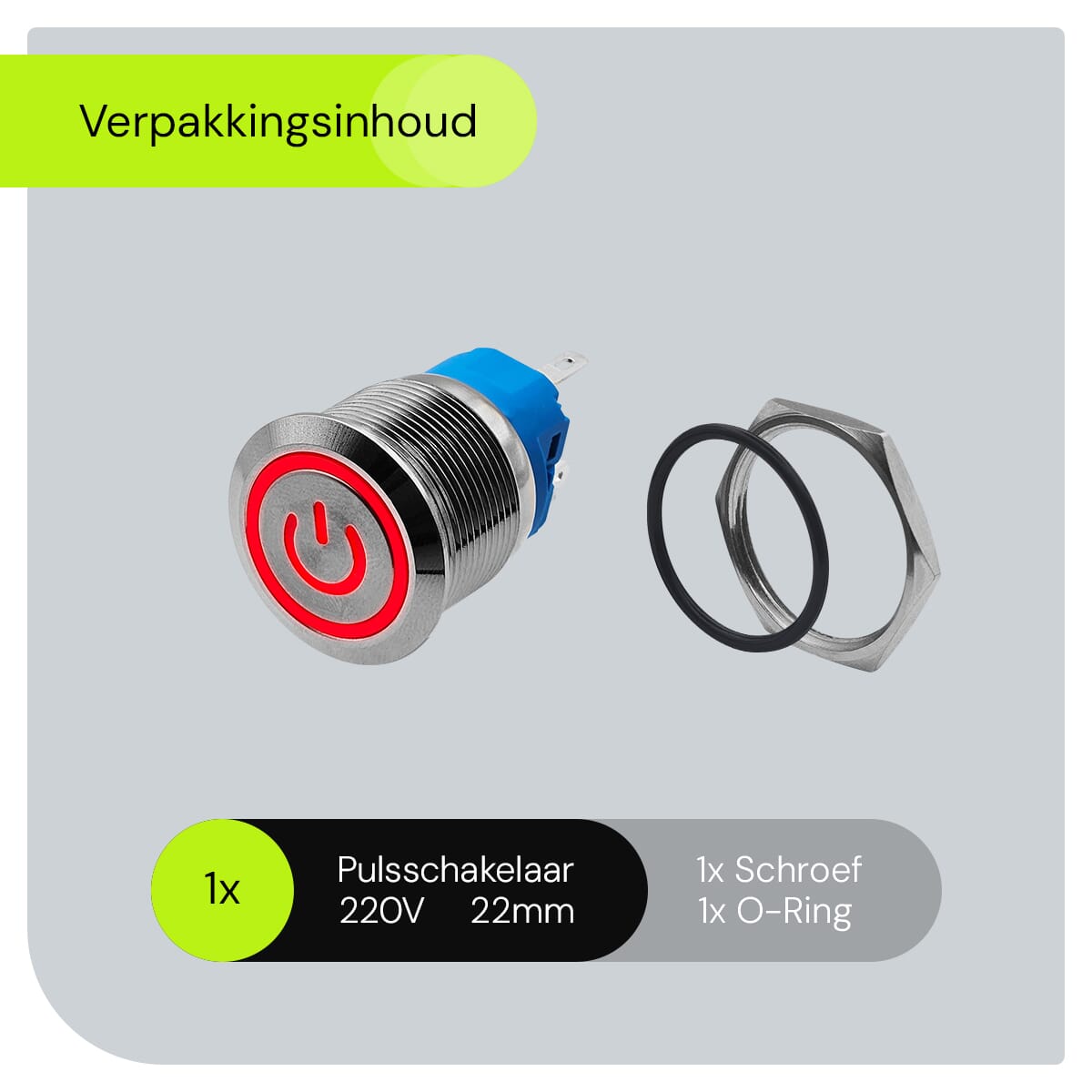 - Wat is de diameter van de schakelaar? De schakelaar heeft een diameter van 22mm.