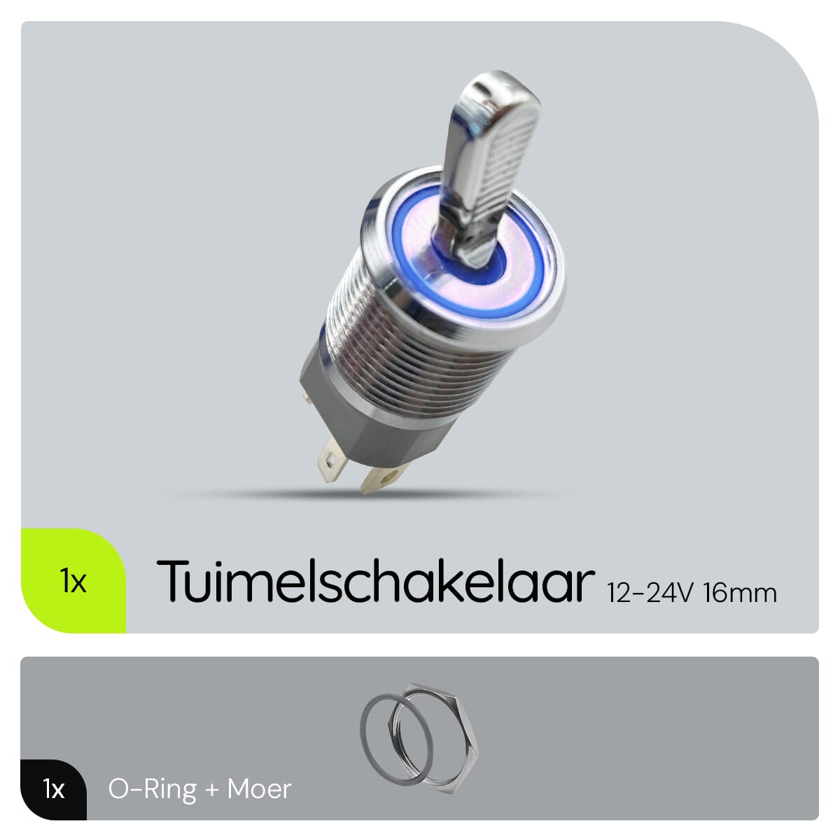 De ProRide Metalen Tuimelschakelaar is een robuuste en betrouwbare schakelaar ontworpen voor gebruik in diverse elektrische systemen. Deze schakelaar is geschikt voor spanningen van 12 tot 24 volt en is ideaal voor toepassingen in voertuigen, boten en andere elektrische installaties. Met een inbouwmaat van 16mm en een LED-indicatie in de kleur blauw, biedt deze schakelaar een duidelijke visuele feedback over de status van het circuit.