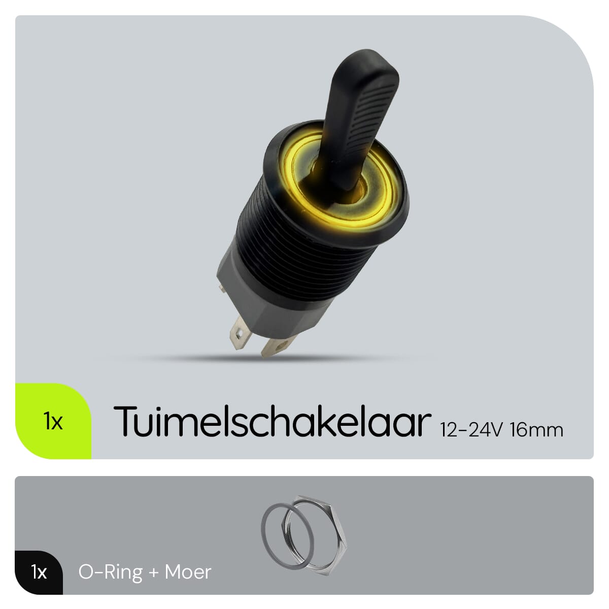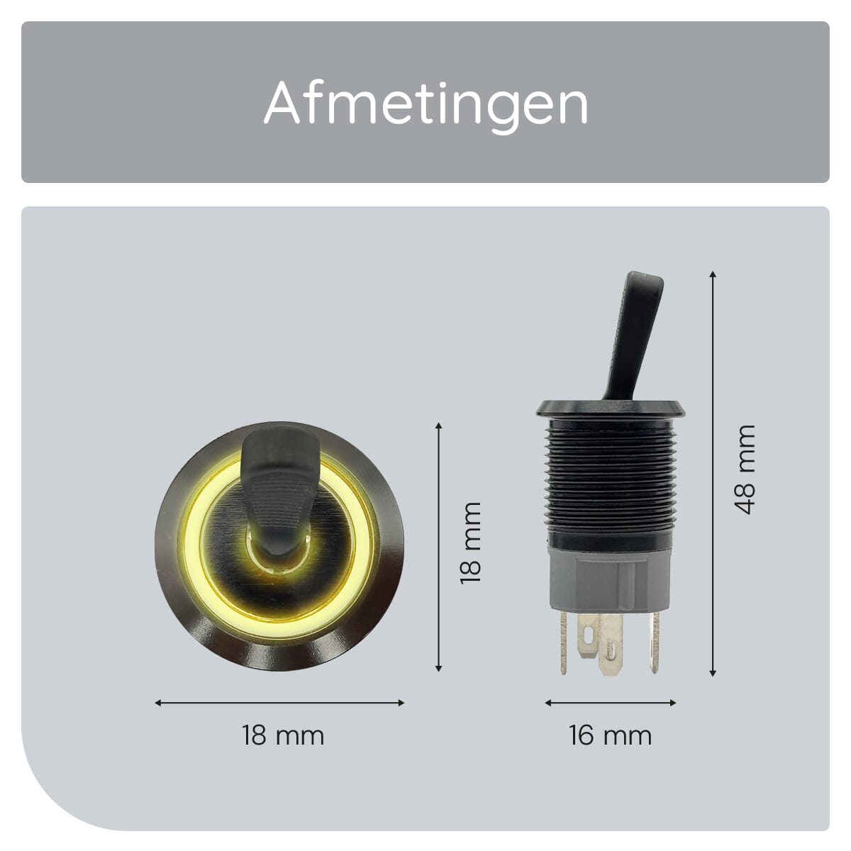 Met een inbouwmaat van 16mm is deze schakelaar eenvoudig te installeren in verschillende panelen en dashboards. De compacte afmetingen maken het mogelijk om de schakelaar in te bouwen zonder veel ruimte in beslag te nemen.