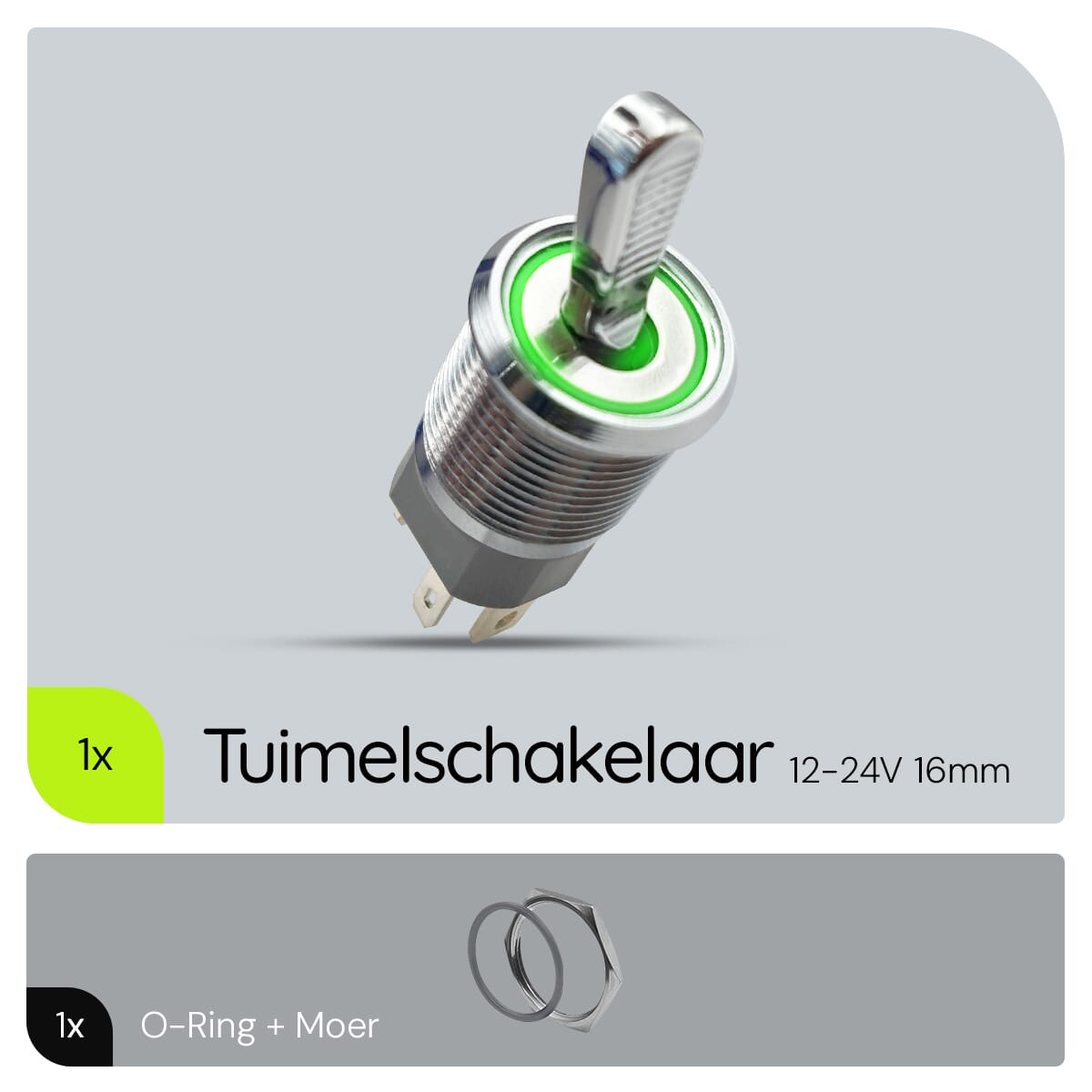 De ProRide Metalen Tuimelschakelaar is een robuuste en betrouwbare schakelaar ontworpen voor gebruik in diverse elektrische systemen. Deze schakelaar is geschikt voor spanningen tussen 12 en 24 volt en is ideaal voor toepassingen in voertuigen, boten en andere elektrische installaties. Met een inbouwmaat van 16mm en een groene LED-indicatie biedt deze schakelaar een duidelijke visuele statusweergave.