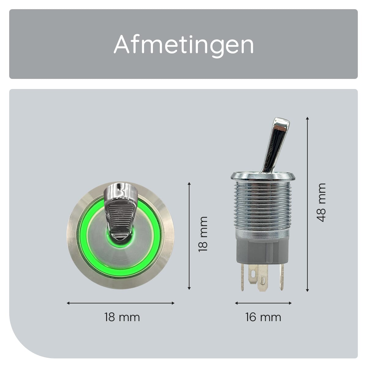Met een inbouwmaat van 16mm is de installatie van deze tuimelschakelaar eenvoudig en snel. De schakelaar past in standaard openingen, waardoor het een praktische keuze is voor zowel nieuwe installaties als vervangingen.