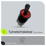 Met een inbouwmaat van 16mm is de ProRide tuimelschakelaar gemakkelijk te installeren in verschillende panelen. De standaardmaat zorgt ervoor dat deze schakelaar compatibel is met de meeste inbouwtoepassingen.