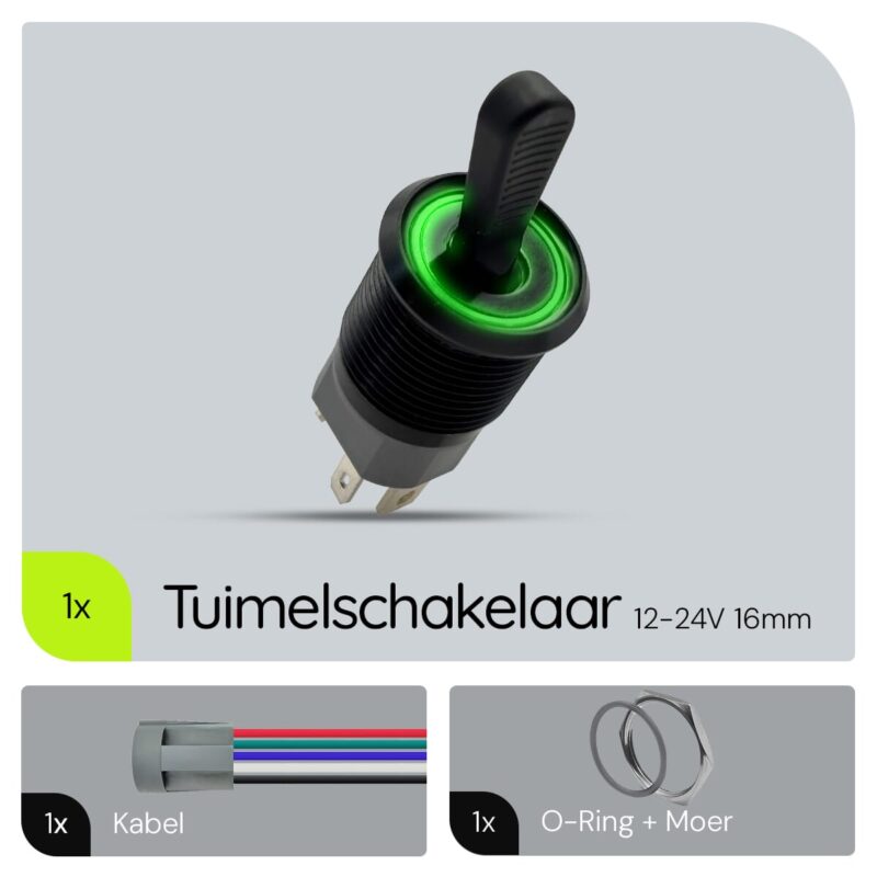 De ProRide Metalen Tuimelschakelaar is een robuuste en betrouwbare schakelaar ontworpen voor gebruik in voertuigen en andere elektrische toepassingen. Deze schakelaar is geschikt voor een spanning van 12-24V en is voorzien van een handige LED-indicatie in de kleur groen. De schakelaar is bedoeld voor inbouw en heeft een diameter van 16mm, waardoor hij eenvoudig in verschillende panelen kan worden gemonteerd.