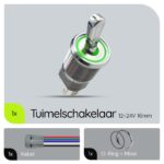 De ProRide Metalen Tuimelschakelaar is een robuuste en betrouwbare schakelaar ontworpen voor gebruik in diverse elektrische toepassingen. Deze schakelaar is geschikt voor spanningen tussen 12 en 24 volt en is voorzien van een handige aansluitkabel. Met een inbouwmaat van 16mm is deze schakelaar eenvoudig te integreren in verschillende apparaten en voertuigen. De groene LED-indicatie biedt een visuele bevestiging van de schakelstatus.