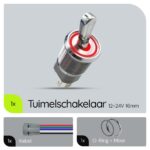 Met een inbouwmaat van 16mm is deze schakelaar eenvoudig te installeren in diverse panelen en dashboards. De meegeleverde aansluitkabel maakt de installatie nog eenvoudiger, waardoor het een praktische keuze is voor zowel professionals als doe-het-zelvers.