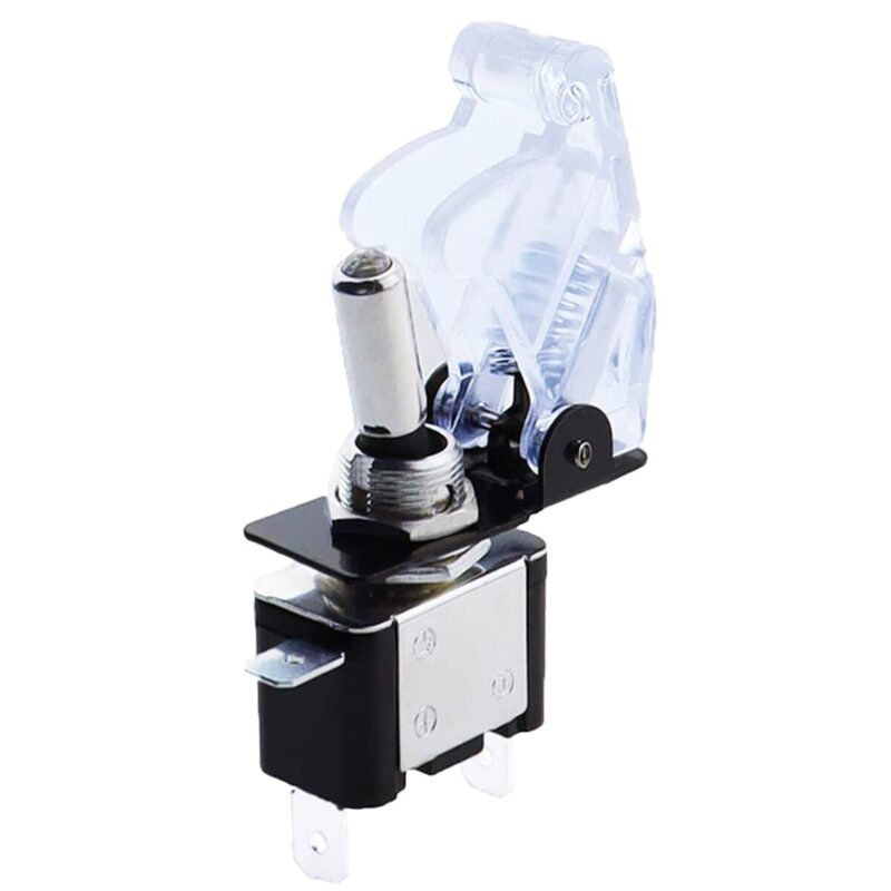 ProRide Tuimelschakelaar 12V ON-OFF – 20A – Enkelpolig – Transparant wit beschermkapje – Wit LED indicatielampje