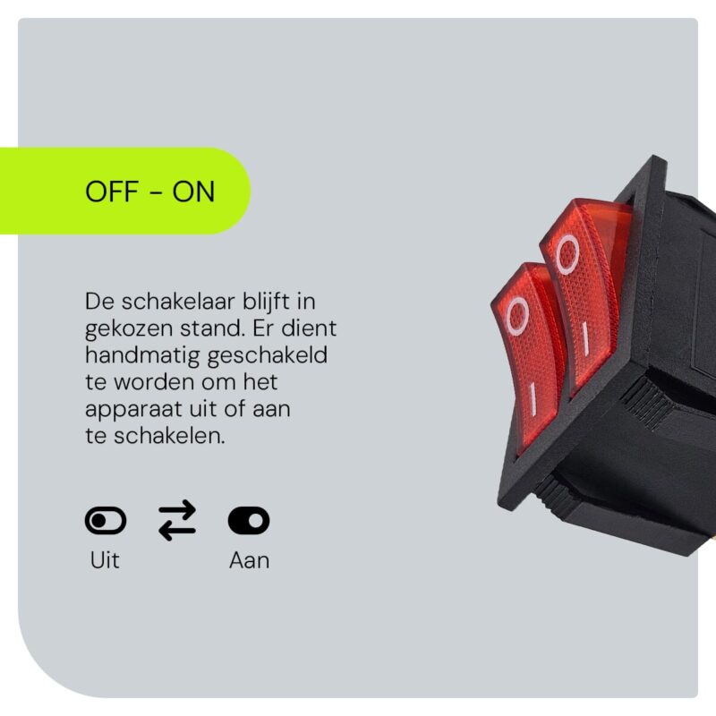 - ON – ON: Perfect als je controle wilt houden; de schakelaar blijft zoals je hem instelt.