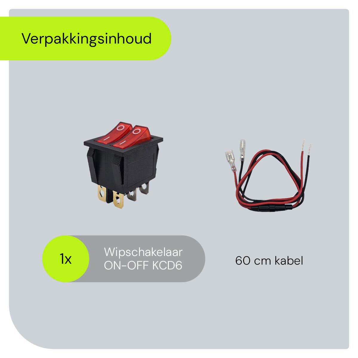 ProRide Dubbele Wipschakelaar ON-OFF KCD6-202 – met Aansluitkabel – 3 Polig – 250V/16A – 30x22mm – Rood met lampje