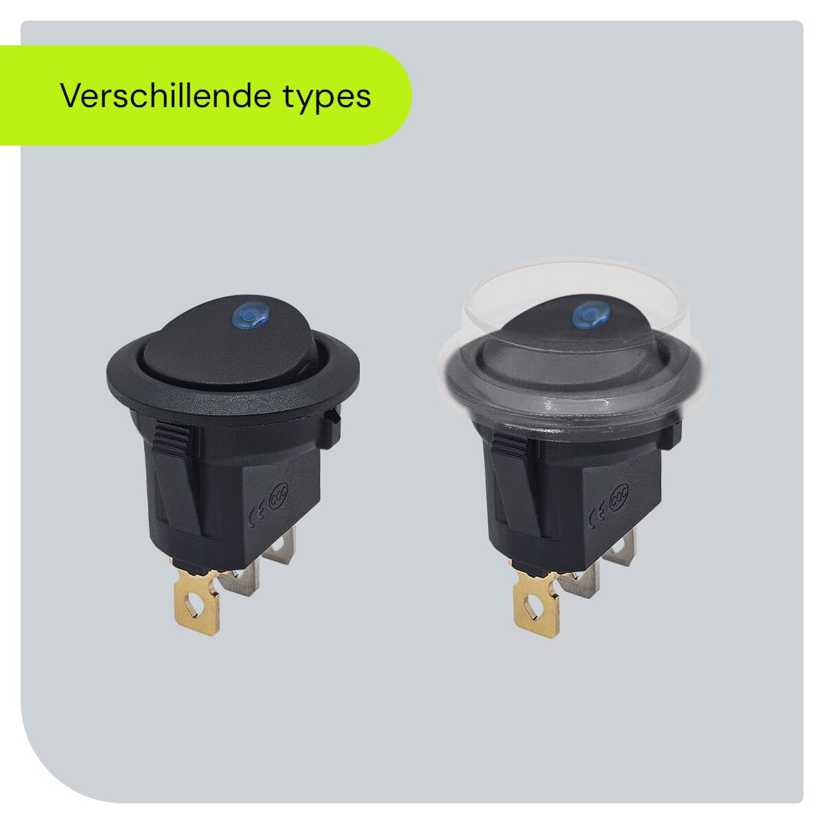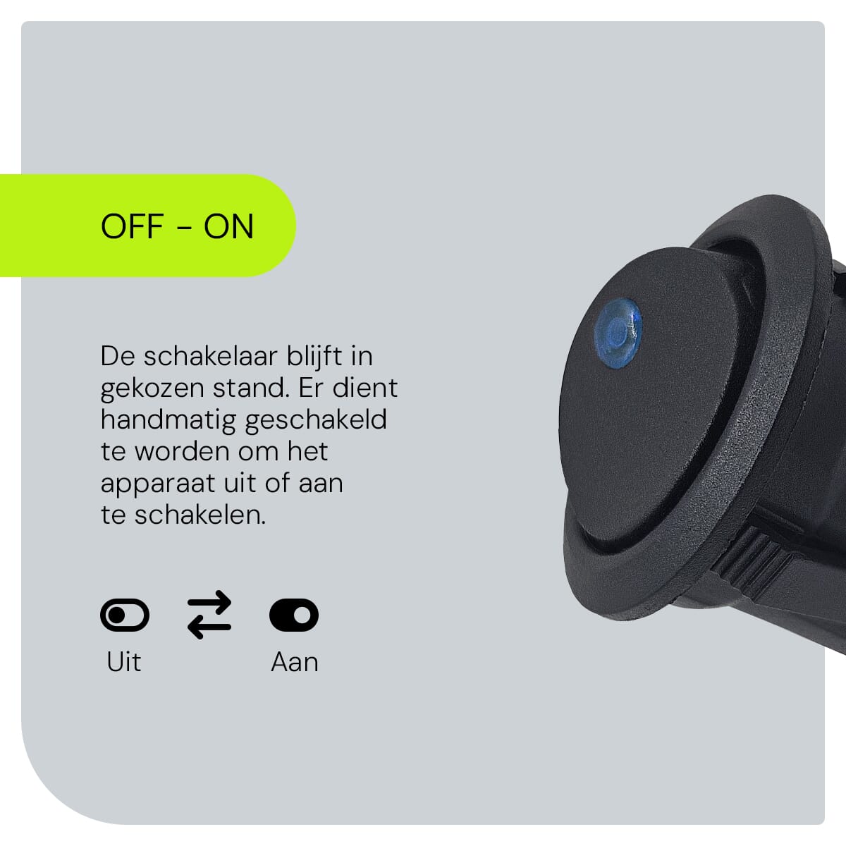 ProRide Wipschakelaar ON-OFF KCD2-12 – met Aansluitkabel – 3 pins – Rond – 12V/20A – LED indicator Blauw