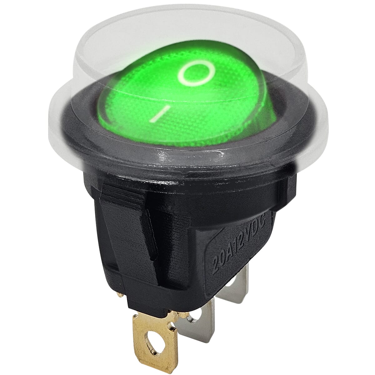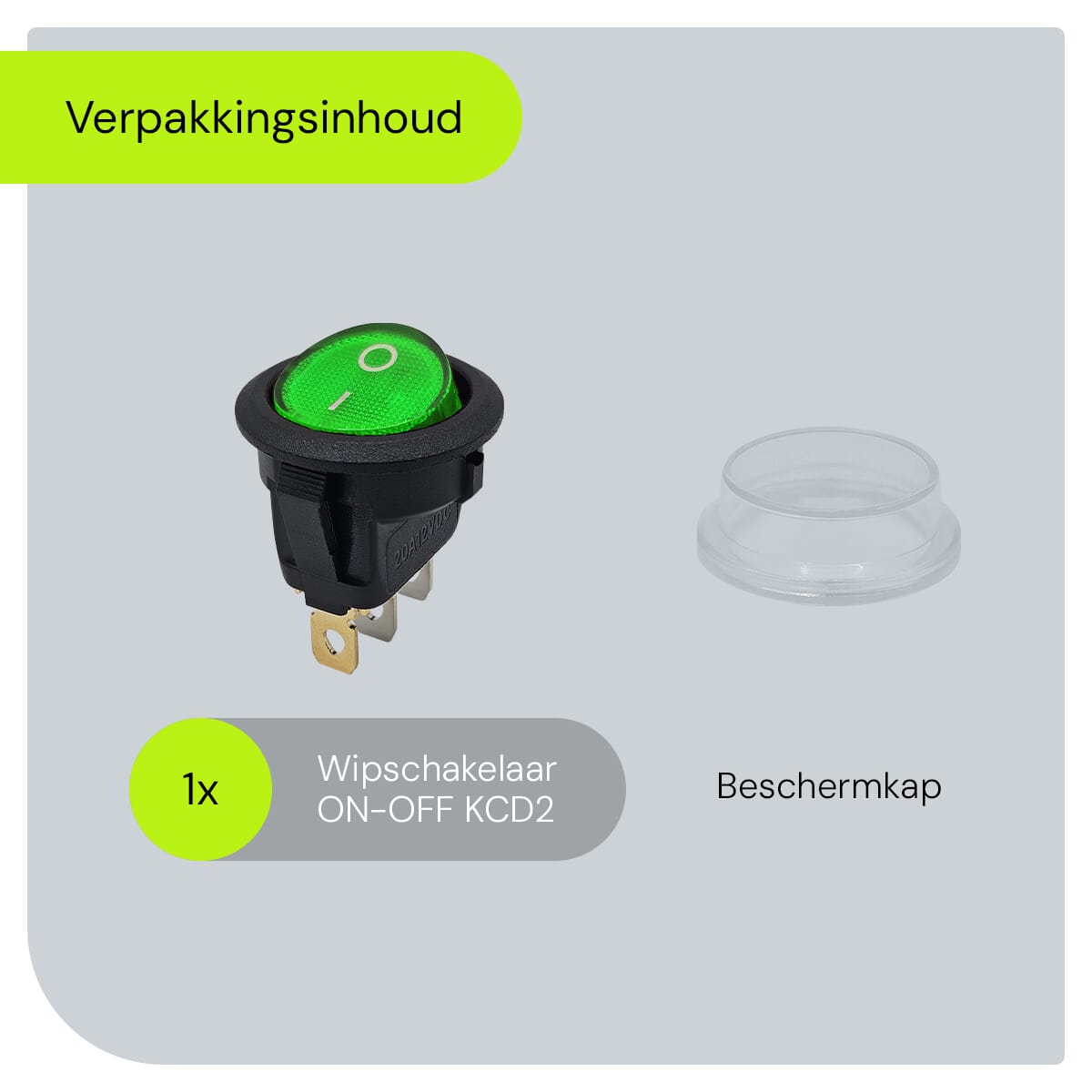 ProRide Wipschakelaar ON-OFF KCD2-12 – met Beschermkapje – 3-pins – Rond – 12V/20A – Groen