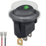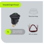 ProRide Wipschakelaar ON-OFF KCD2-12 – met Beschermkapje en Aansluitkabel – 3 pins – Rond – 12V/20A – LED indicator Groen