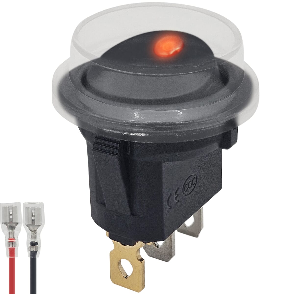 ProRide Wipschakelaar ON-OFF KCD2-12 – met Beschermkapje en Aansluitkabel – 3 pins – Rond – 12V/20A – LED indicator Rood