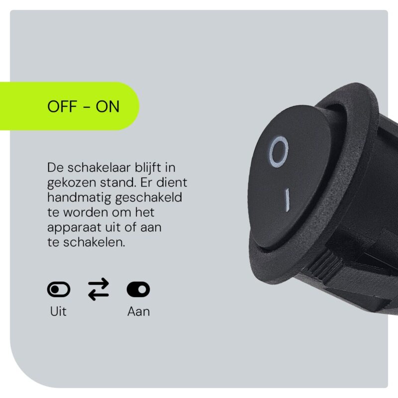 - ON – ON: Perfect als je controle wilt houden; de schakelaar blijft zoals je hem instelt.