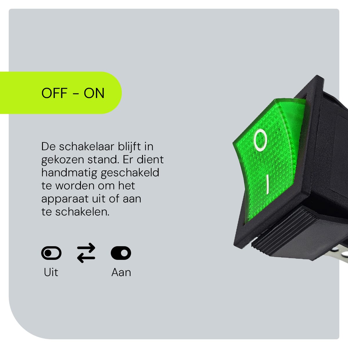 • Schakelstand: ON-OFF, ook wel: aan en uit schakelaar.