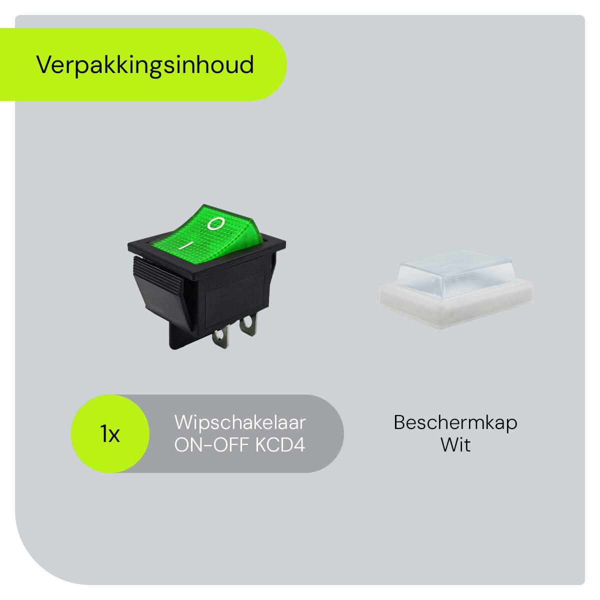 ProRide Wipschakelaar ON-OFF KCD4-202 – met Wit Beschermkapje – 2 Polig – 250V/16A – 30x22mm – Groen met controlelampje