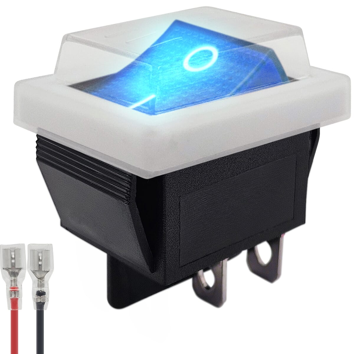 ProRide Wipschakelaar ON-OFF KCD4-202 – met Wit kapje en Aansluitkabel – 2 Polig – 250V/16A – 30x22mm – Blauw met lampje