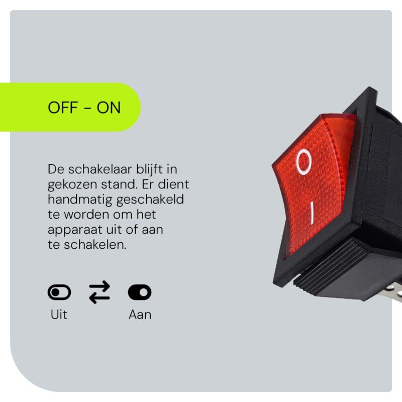 - ON – ON: Perfect als je controle wilt houden; de schakelaar blijft zoals je hem instelt.