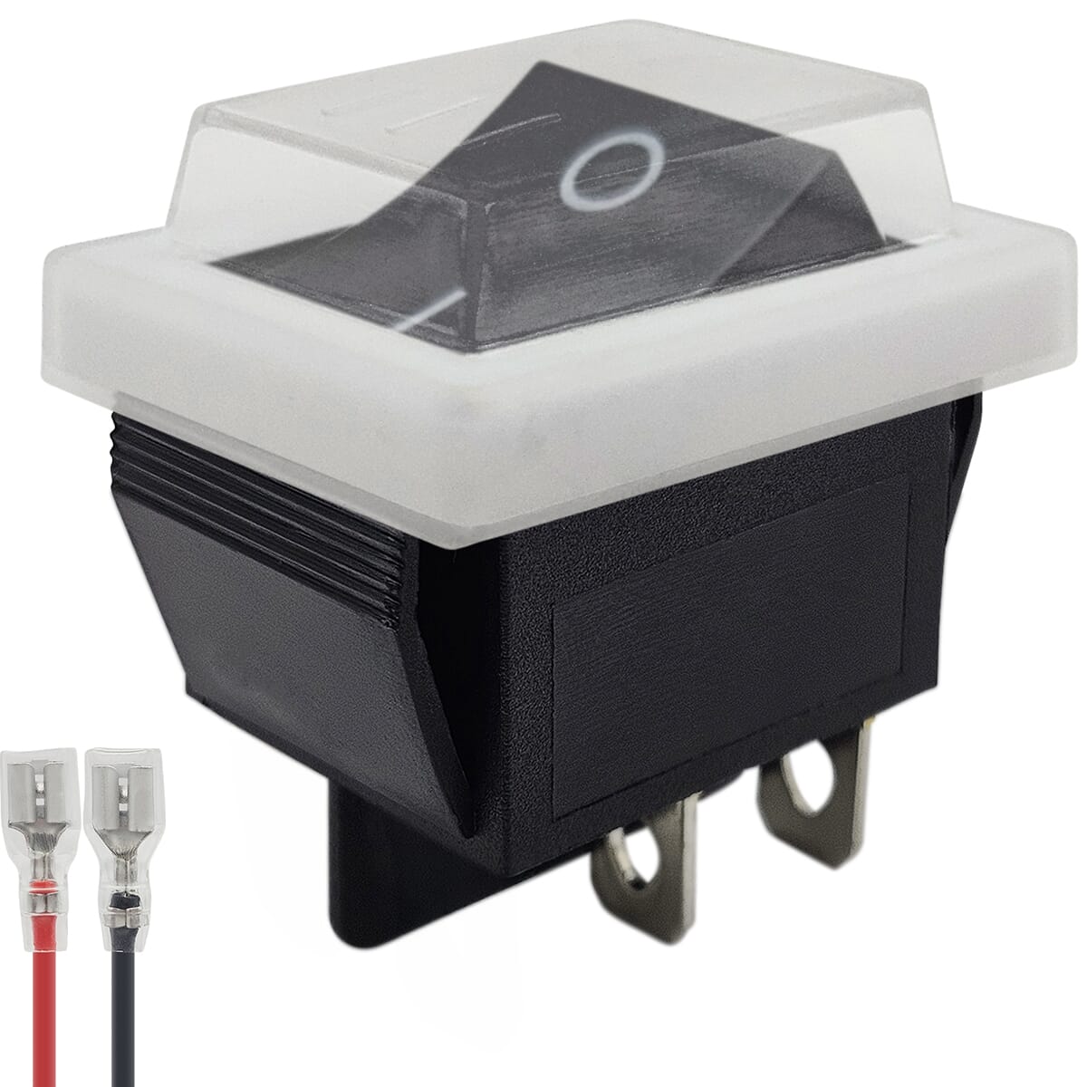 ProRide Wipschakelaar ON-OFF KCD4-202 – met Wit kapje en Aansluitkabel – 2 Polig – 250V/16A – 30x22mm – Zwart zonder lampje