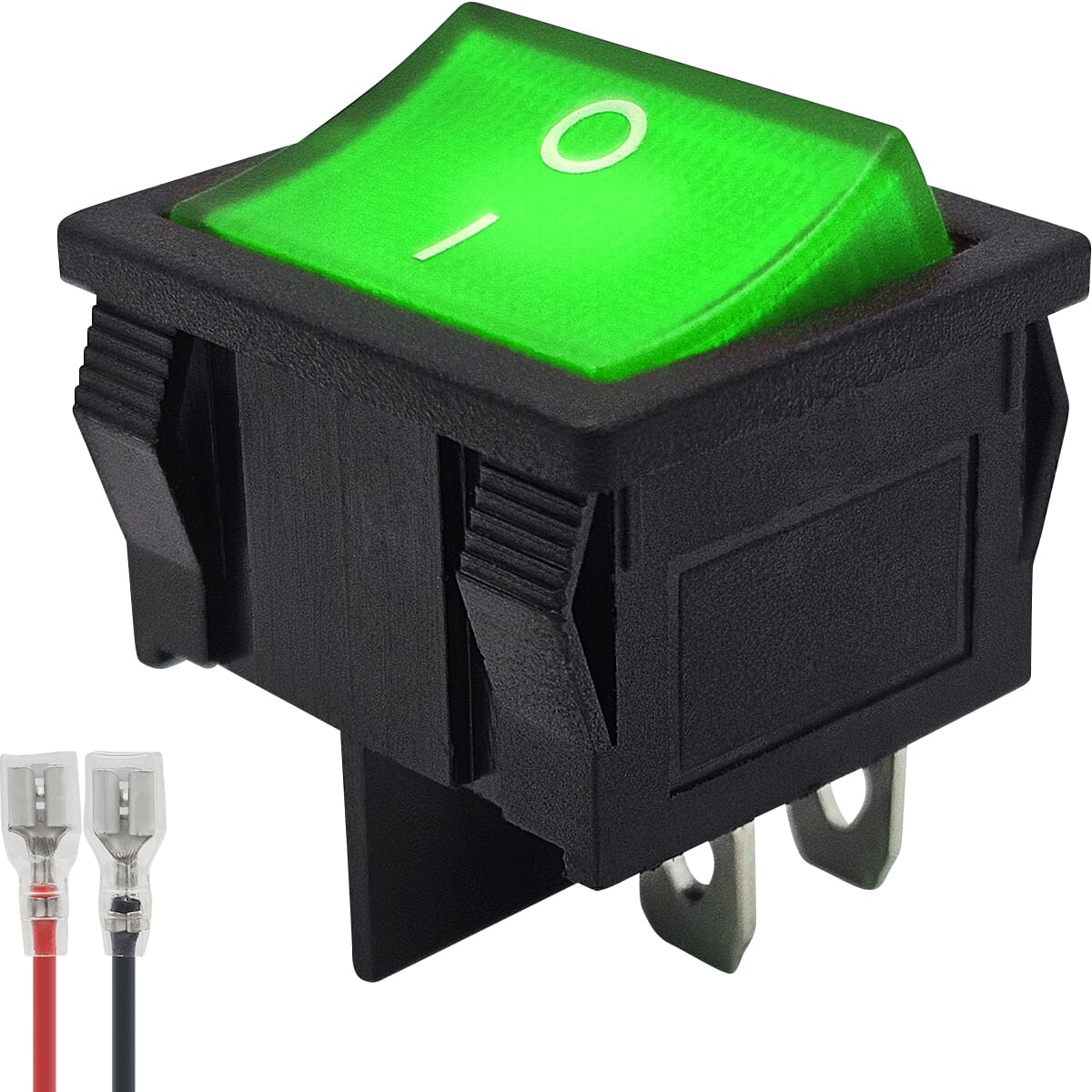 ProRide Wipschakelaar ON-OFF KCD5-202 – met Aansluitkabel – 2 Polig – 250V/6A – Groen met lampje