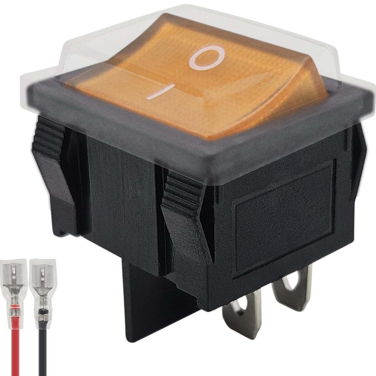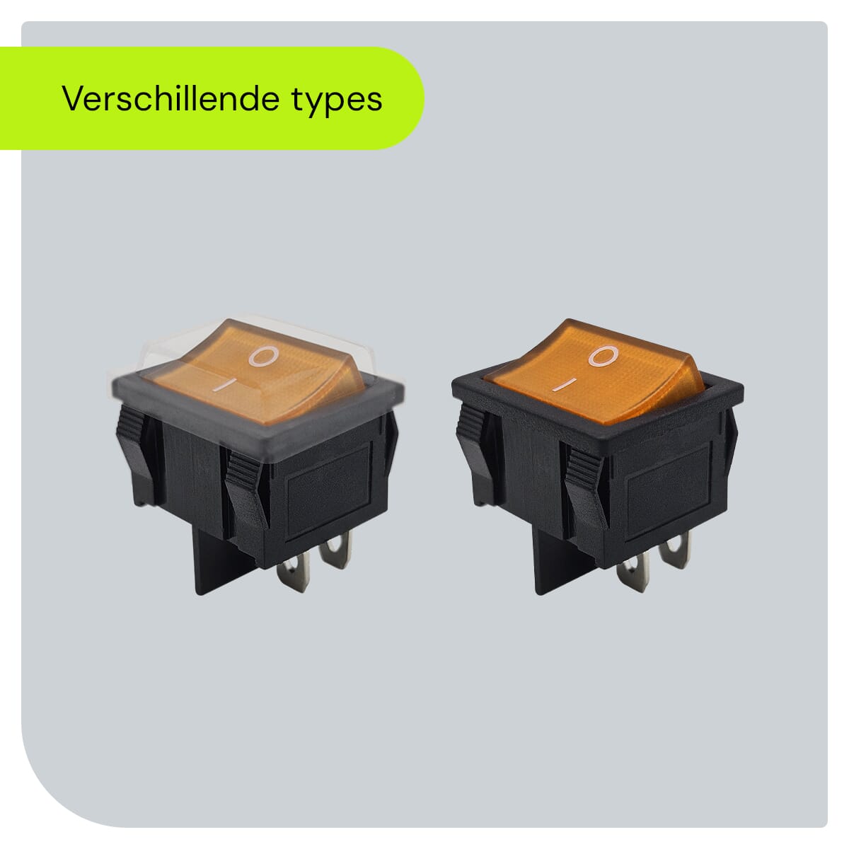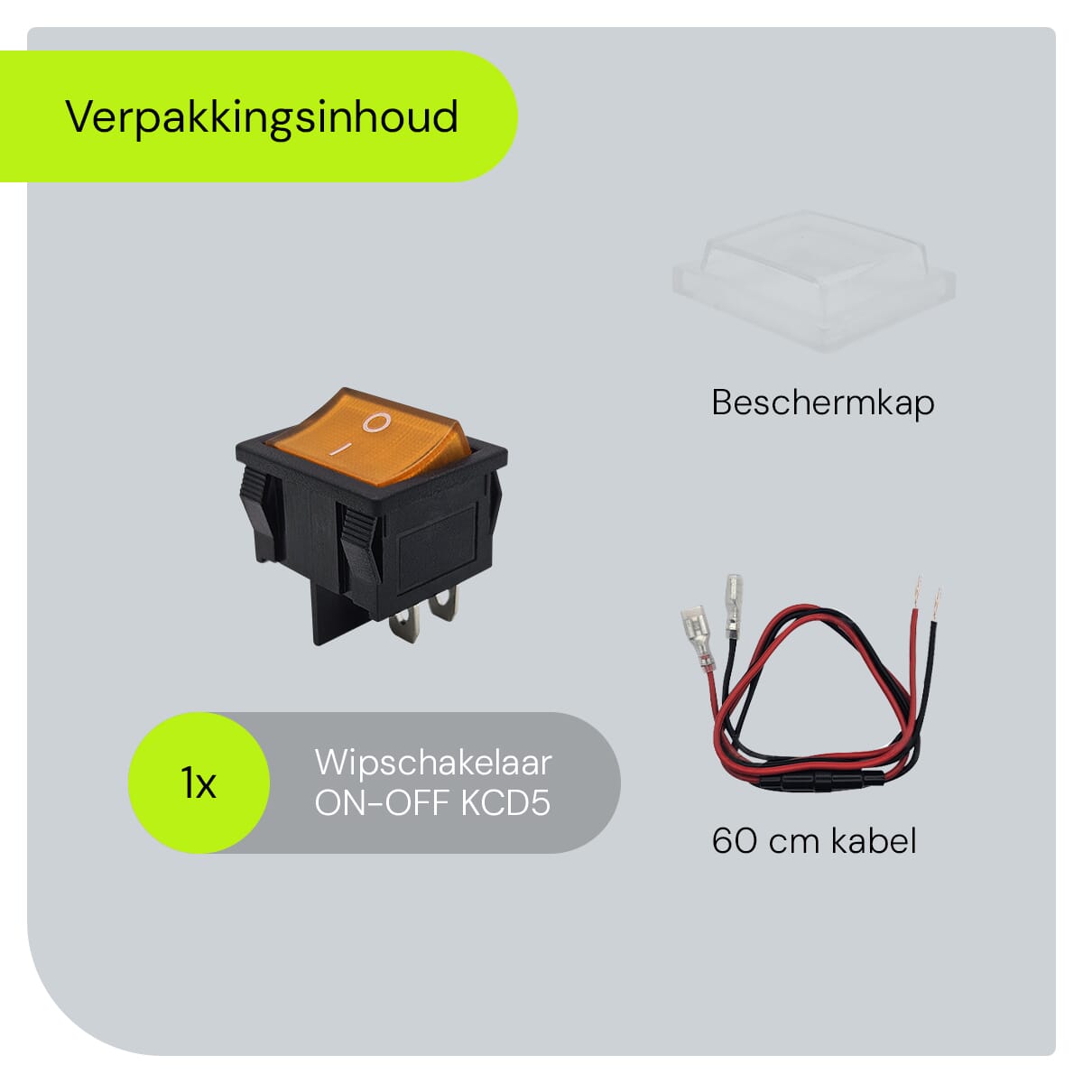 ProRide Wipschakelaar ON-OFF KCD5-202 – met Beschermkapje en Aansluitkabel – 2 Polig – 250V/6A – Oranje zonder lampje