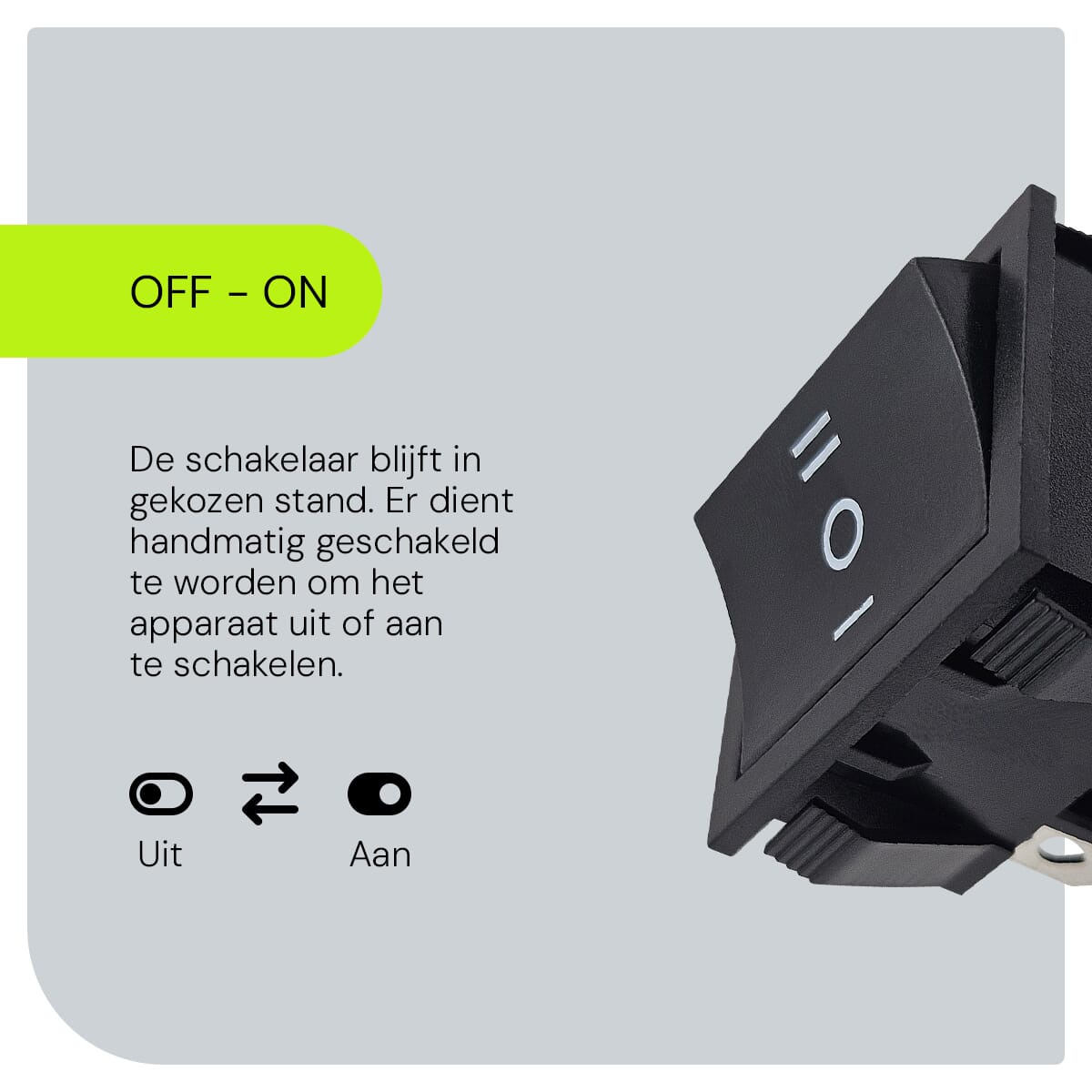 - ON – ON: Perfect als je controle wilt houden; de schakelaar blijft zoals je hem instelt.