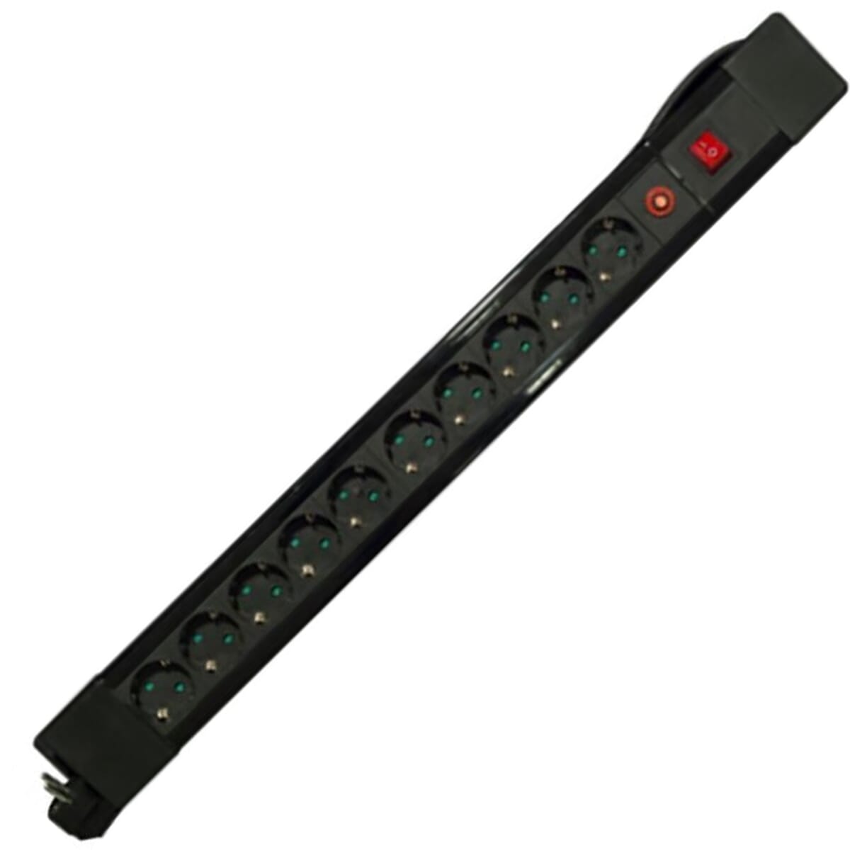 Met tien stopcontacten biedt deze stekkerdoos voldoende capaciteit om meerdere apparaten tegelijkertijd aan te sluiten, wat handig is in omgevingen met veel elektrische apparatuur.