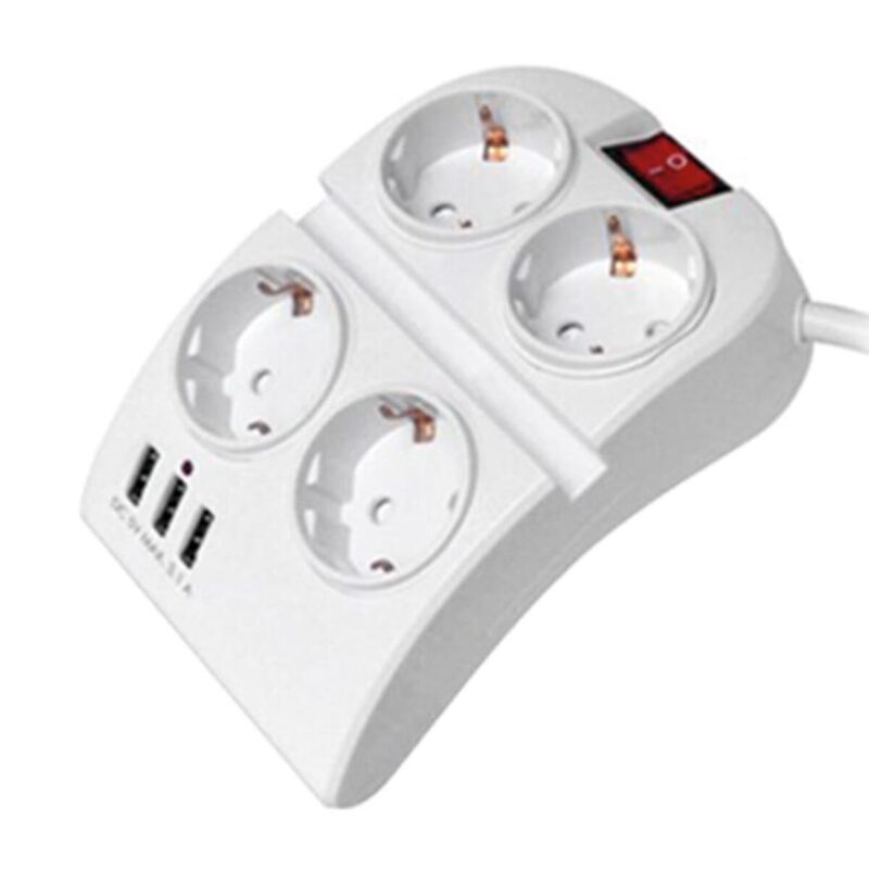 - Multifunctioneel: Met vier stopcontacten en drie USB-poorten kun je meerdere apparaten tegelijk aansluiten en opladen.