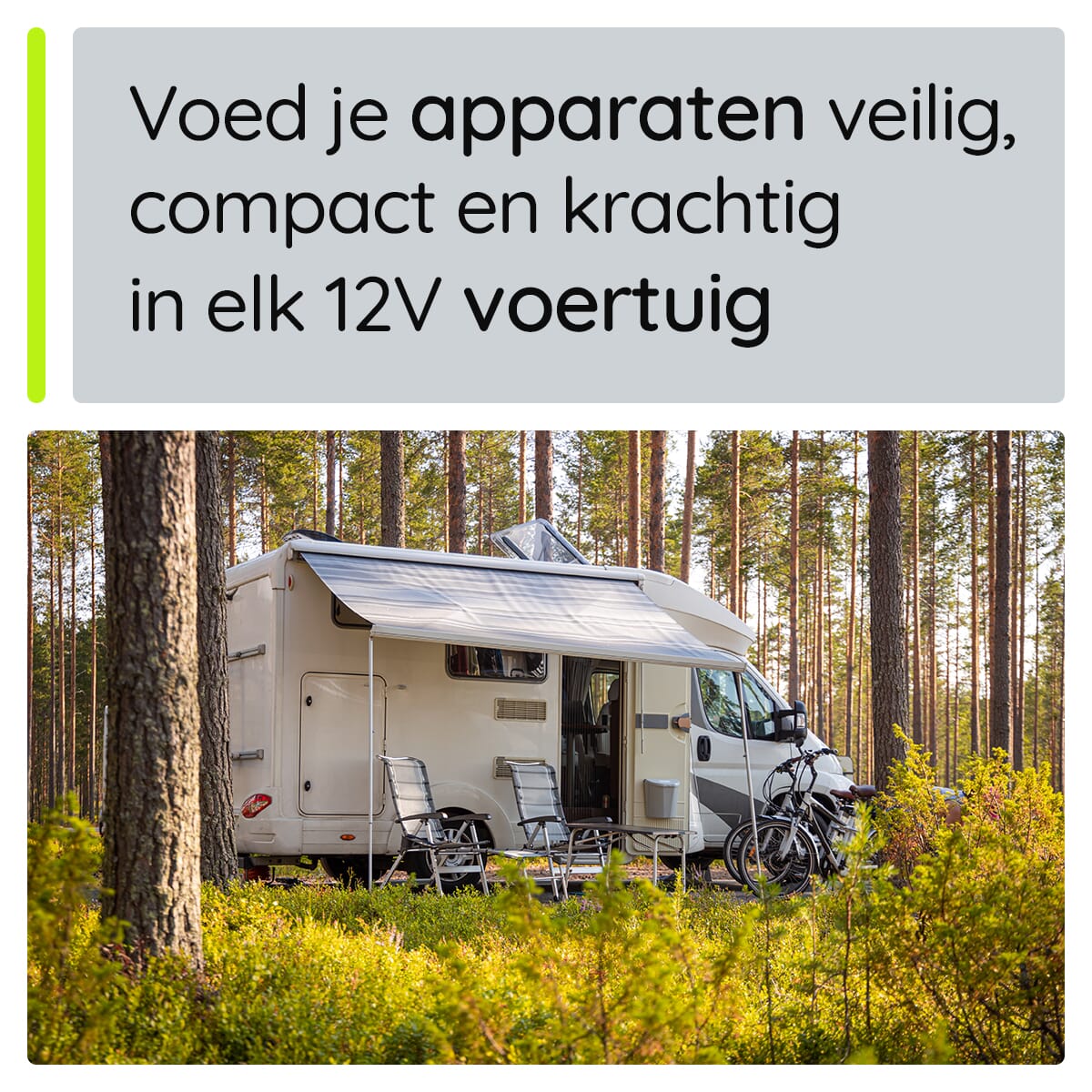 De converter verhoogt de ingangsspanning efficiënt naar 24V, zodat 24V apparatuur gebruikt kan worden binnen een 12V systeem.