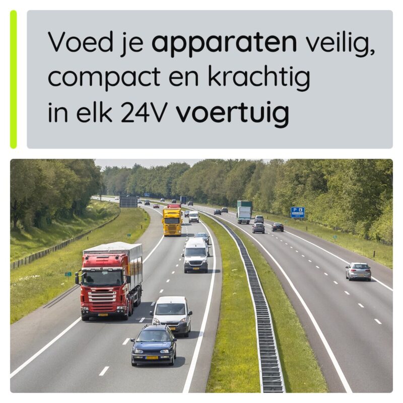De DC-DC Converter werkt door de inkomende 24V gelijkstroom om te zetten naar een stabiele 12V gelijkstroom. Dit proces wordt bereikt door middel van geavanceerde schakelingen die zorgen voor een hoge efficiëntie en minimale verliezen.