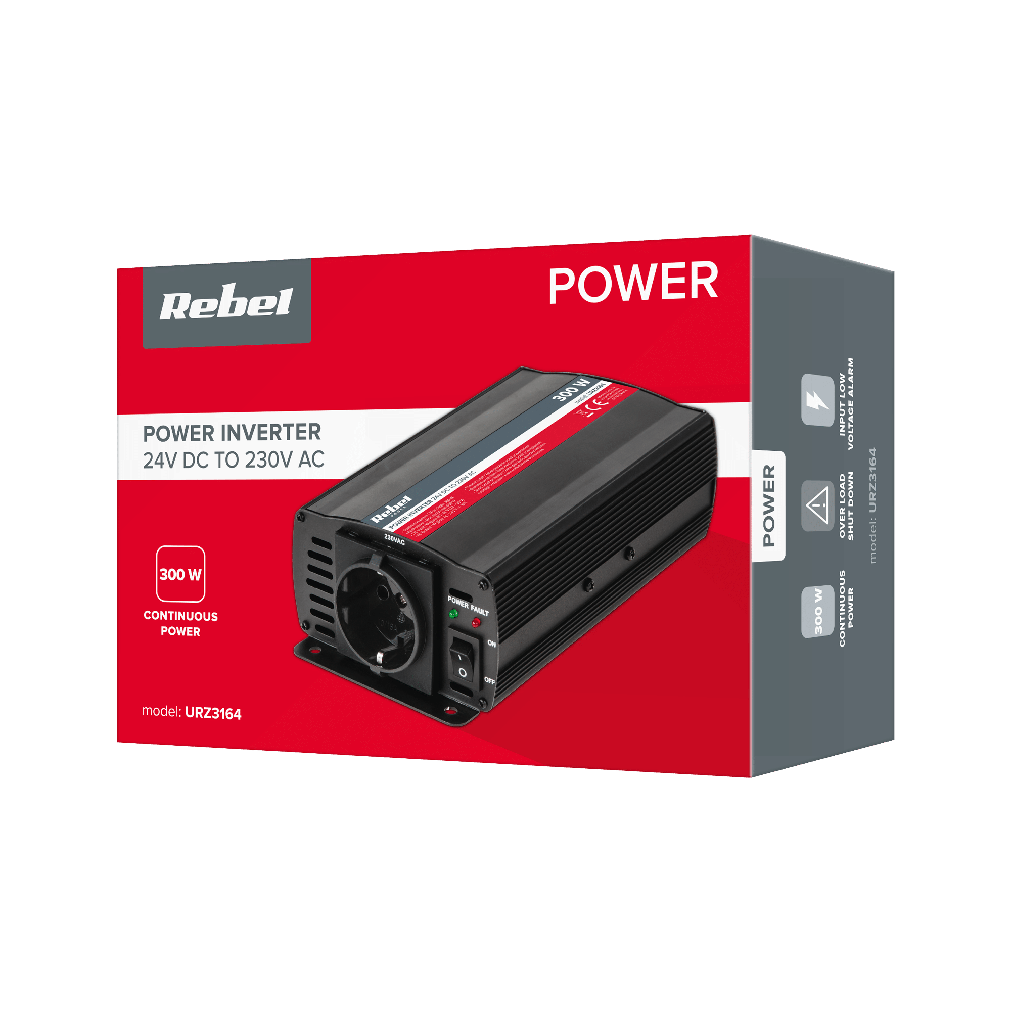 Rebel Omvormer – Spanningsomvormer – 24V DC naar 230V AC – Max. 300W – Zwart