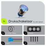 Of je nu werkt met een 12V of 24V systeem, deze schakelaar past zich moeiteloos aan. De meegeleverde aansluitkabels maken de installatie eenvoudig, zelfs voor beginners.