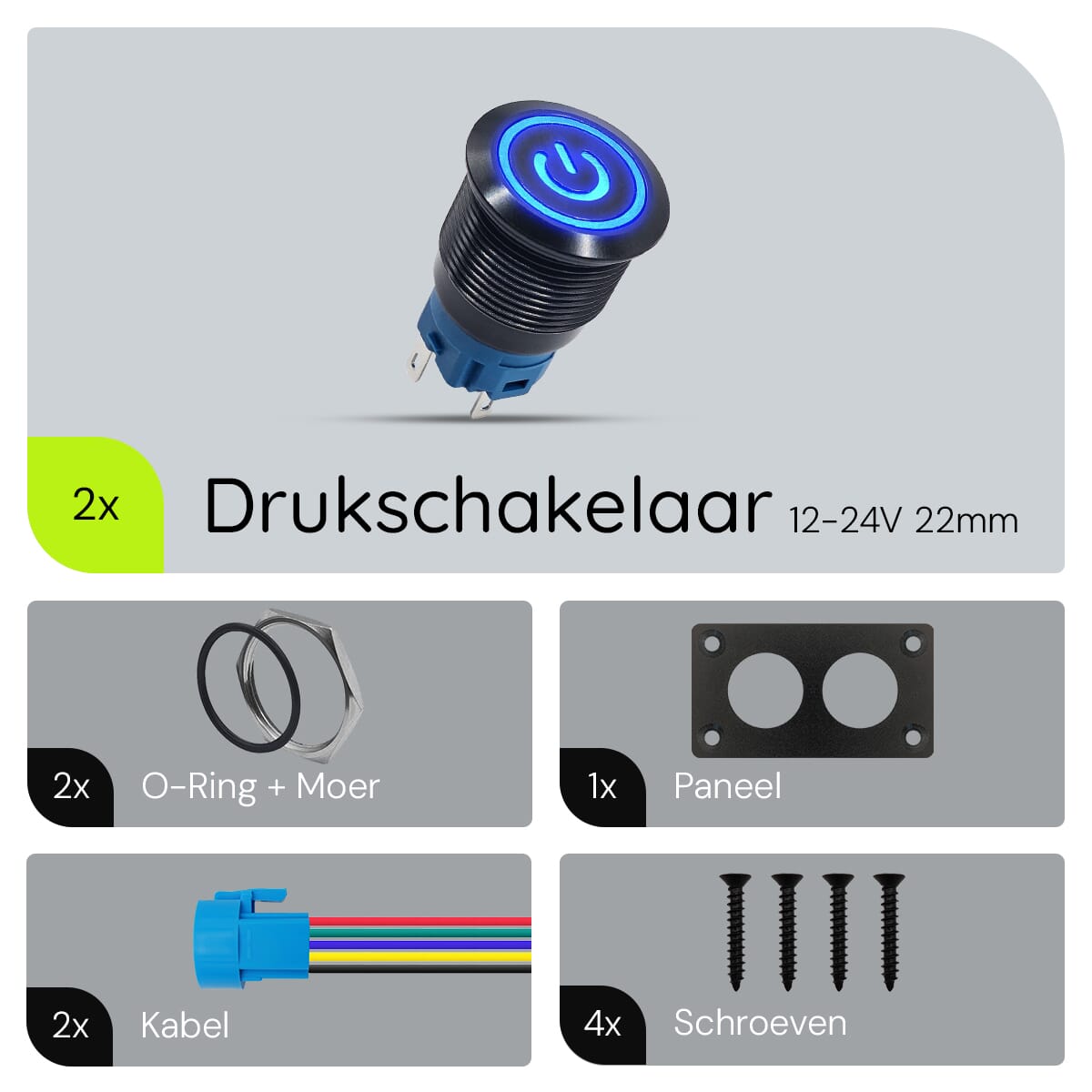 De ProRide drukschakelaar werkt op een spanning van 12-24V en is ontworpen voor een eenvoudige ON-OFF functionaliteit. Druk simpelweg op de knop om je apparaat aan of uit te schakelen, met de LED-indicatie die de status aangeeft.