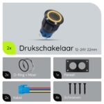 ProRide Metalen drukschakelaar 12-24V ON-OFF – Inbouwpaneel tweevoudig – 22mm – IP67 – LED indicatie Geel