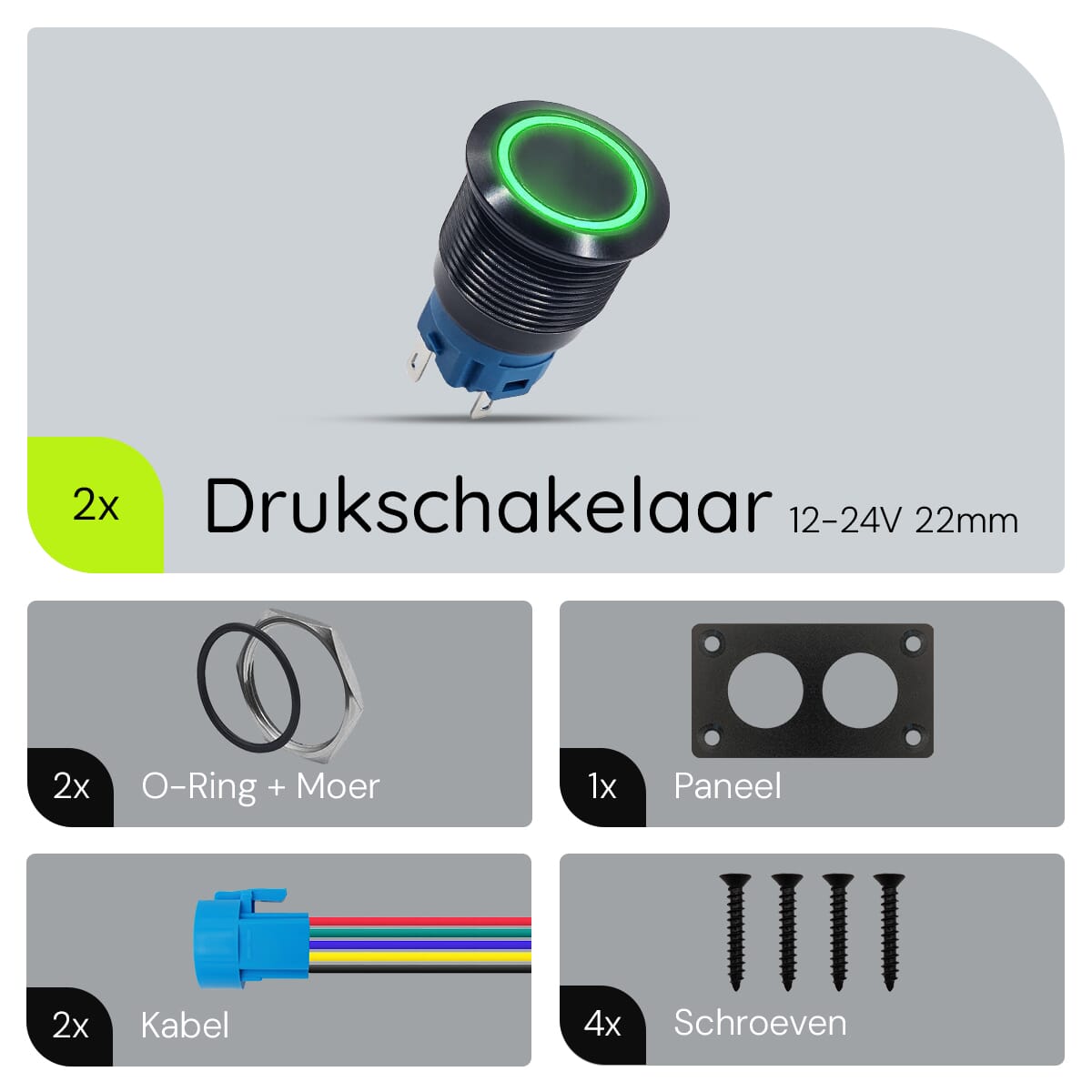 - Wat is de diameter van de schakelaar? De schakelaar heeft een diameter van 22mm, ideaal voor standaard inbouwpanelen.