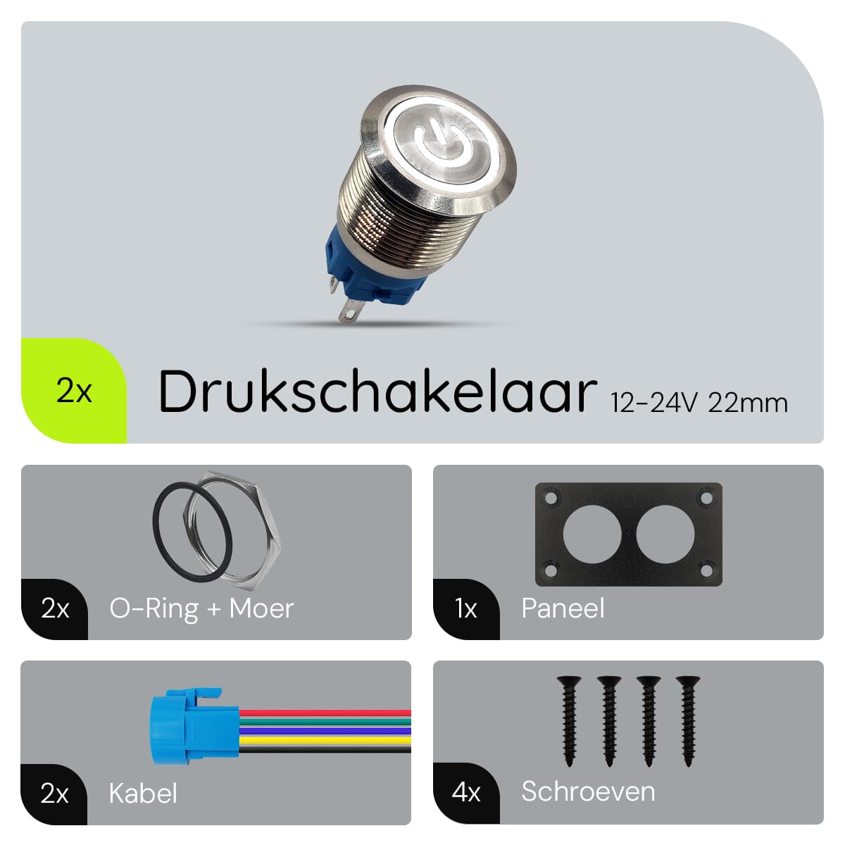 De ProRide drukschakelaar werkt op een spanning van 12-24V en biedt een eenvoudige ON-OFF functionaliteit. Druk simpelweg op de knop om je apparaat aan of uit te schakelen, met de LED-indicatie die de status aangeeft.