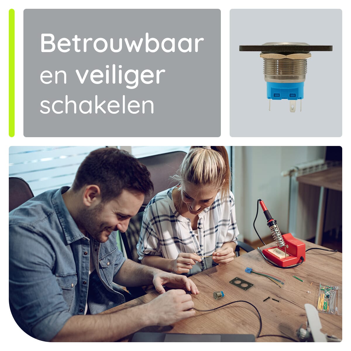 - Is de schakelaar geschikt voor buitengebruik? Ja, dankzij de IP67-classificatie is hij bestand tegen water en stof.