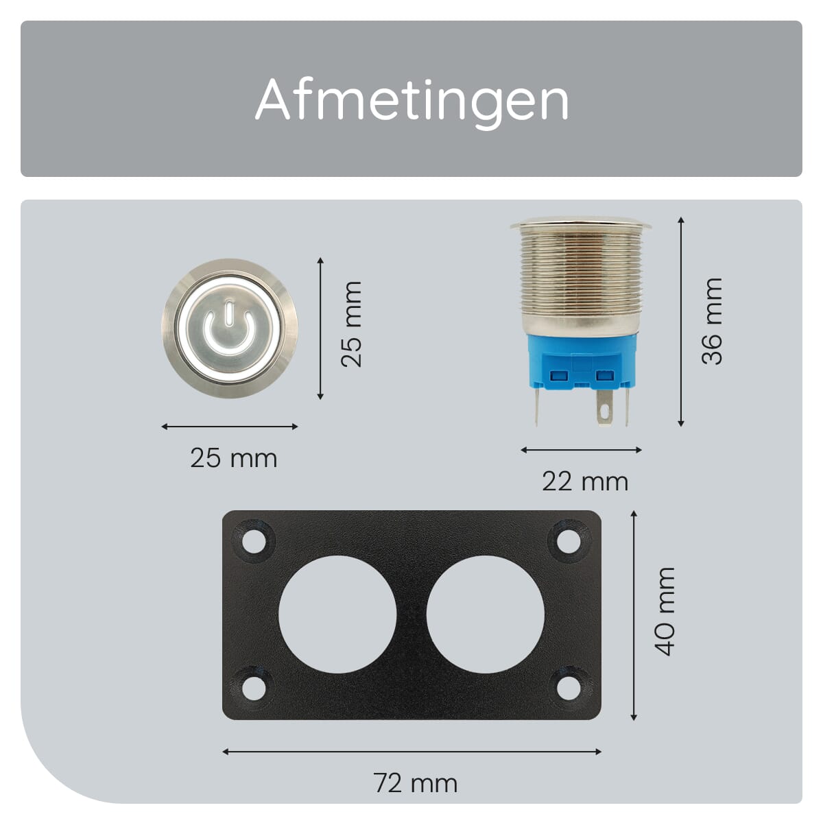 - Hoe groot is de schakelaar? De schakelaar heeft een diameter van 22mm.