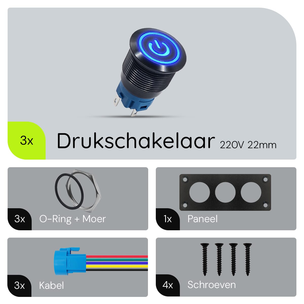 - Wat is de diameter van de schakelaar? De schakelaar heeft een diameter van 22mm.