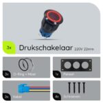 - Welke diameter heeft de schakelaar? De schakelaar heeft een diameter van 22mm.