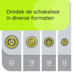 - Welke afmetingen heeft de schakelaar? De schakelaar heeft een diameter van 12mm, wat hem compact en gemakkelijk te installeren maakt.