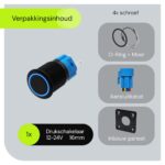 ProRide Metalen drukschakelaar Inbouw 12V ON-OFF – 16mm – Enkelvoudig inbouwpaneel met Aansluitkabel – 12V/24V – LED indicatie Blauw
