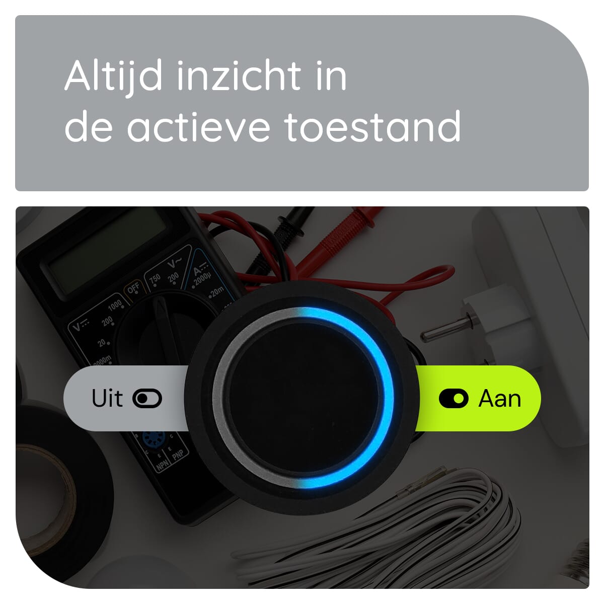 De ProRide Metalen drukschakelaar heeft een strak en modern design dat perfect past in elk interieur. De blauwe LED-indicatie zorgt niet alleen voor een stijlvolle touch, maar maakt het ook gemakkelijk om te zien of de schakelaar aan of uit staat.