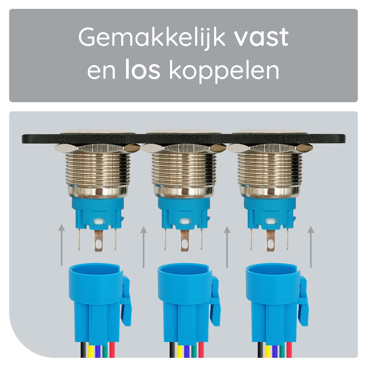 Dankzij de IP67-classificatie is het ProRide Inbouwpaneel bestand tegen de elementen. Of je nu in de regen werkt of in een stoffige omgeving, deze schakelaars blijven betrouwbaar functioneren.